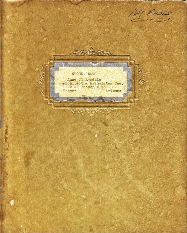 Purchased at the estate sale of Art Rader, who worked for the Lusk Corporation and was the original architect of the Indian Ridge development, was some of his tools along with a book titled "Stock Plans" which contains over 200 original blueprints of "Distinctive Plans for Western Homes" designed by Anne J. Rysdale.